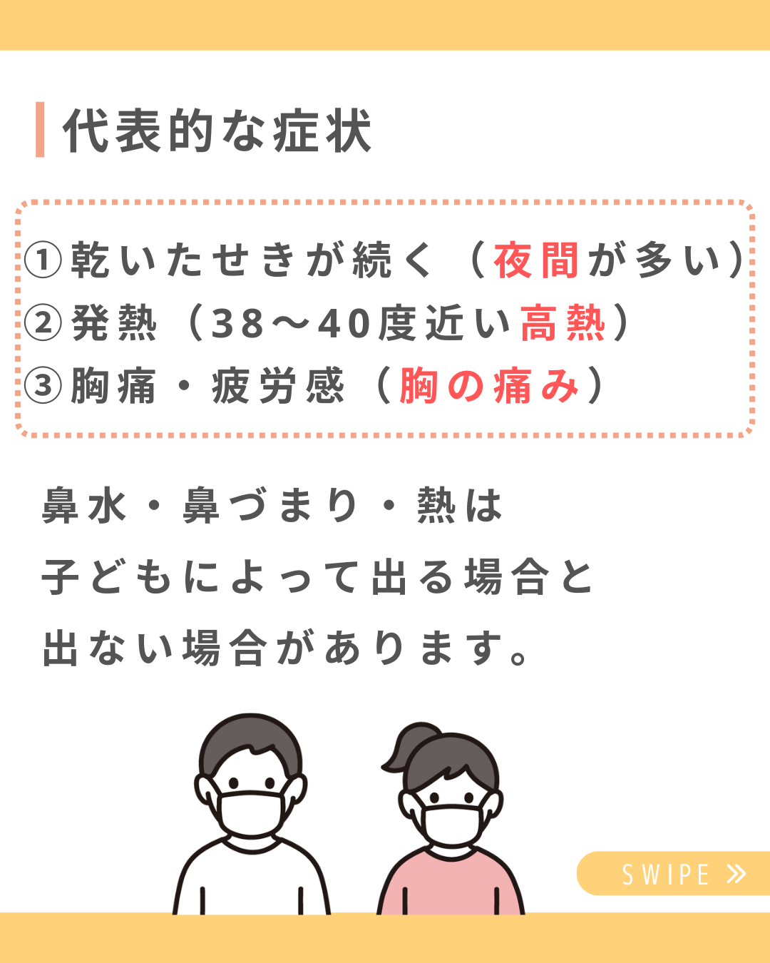 鼻水・鼻づまり・熱は、子どもによって出る場合と出ない場合があります。
