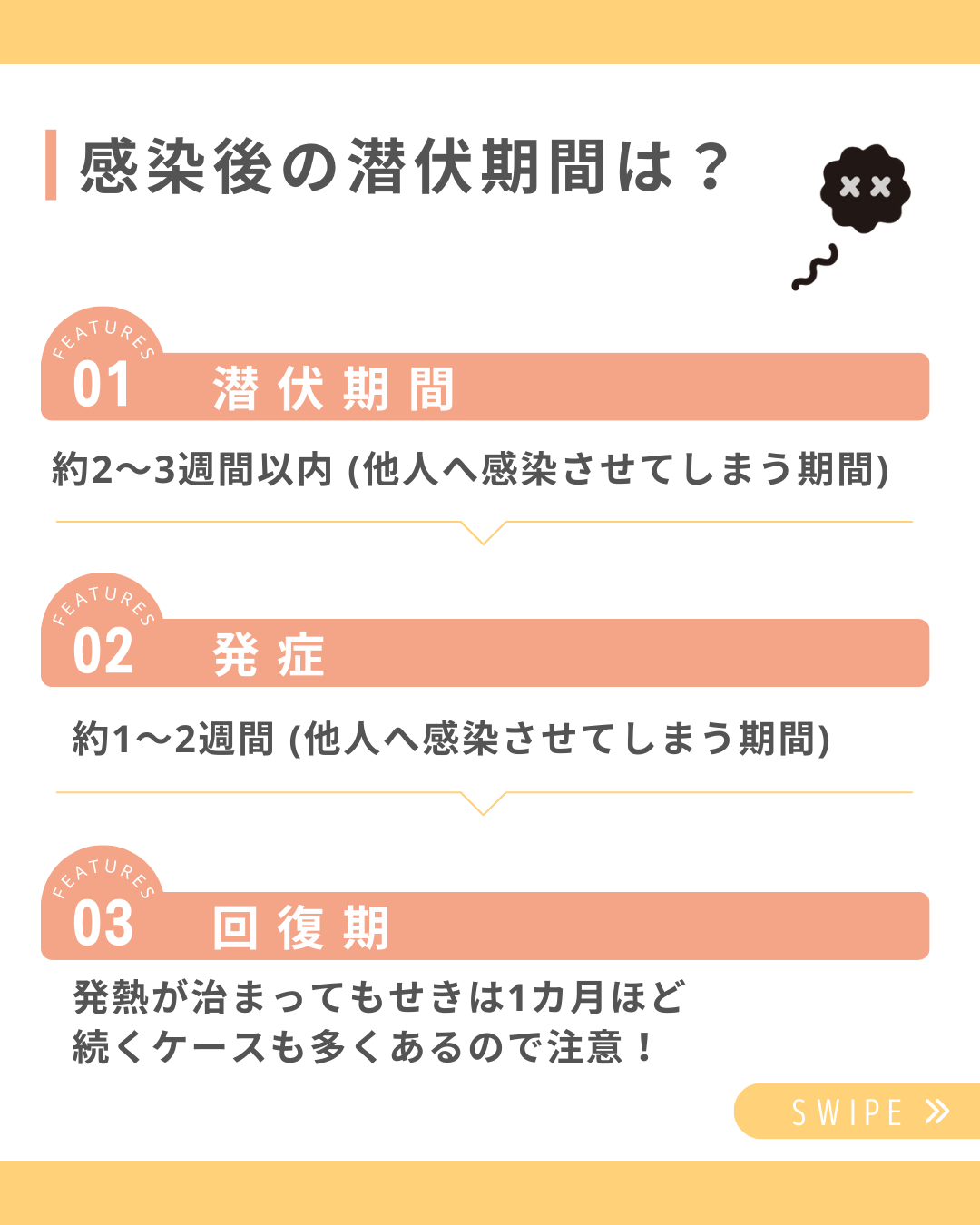発熱が治まってもせきは1ヵ月ほど続くケースも多くあるので注意!
