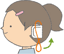 ❷ 輪ゴムを耳にひっかけ、8の字にひねって巻きつける