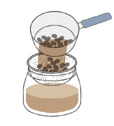 ❸ 煮汁を茶こしなどでこす。残った黒豆は、料理などに使う