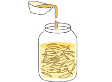 ❹ 適量のハチミツを少量の湯で溶かし、❸に加えてよく混ぜる。ふたをして5日間冷蔵したら完成