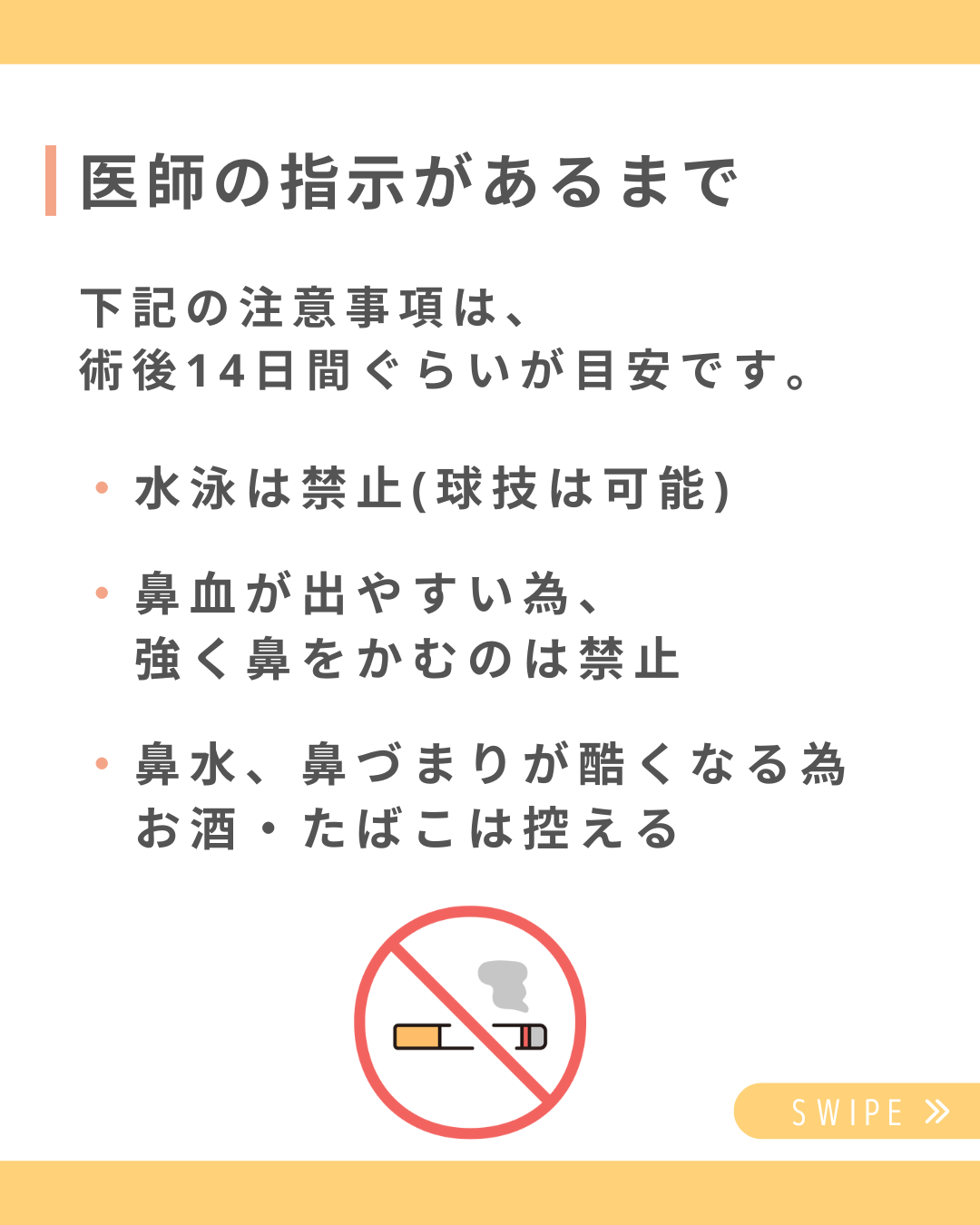 下記の注意事項は、術後14日間ぐらいが目安です。
