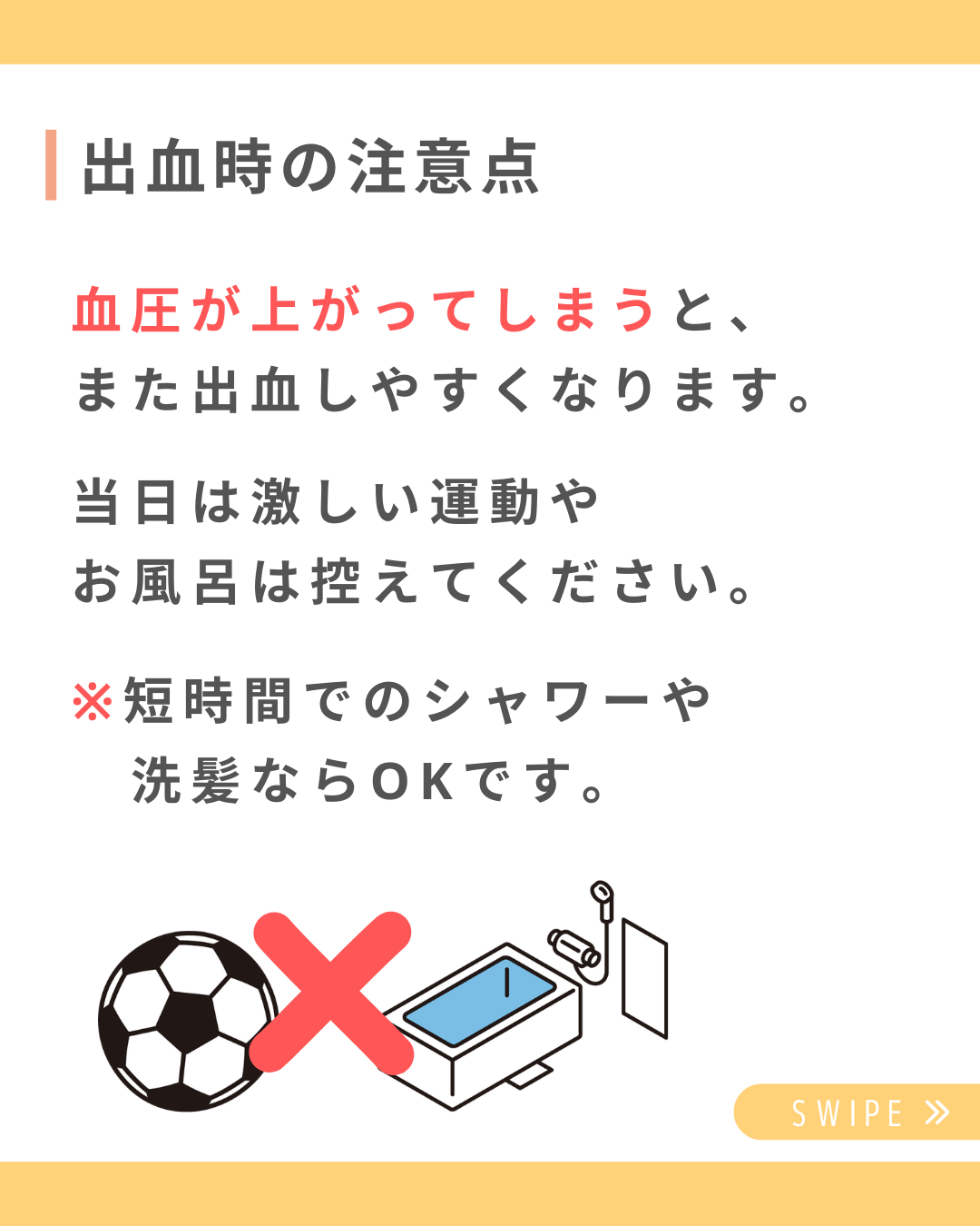 止血してから1週間後はカサブタが取れやすい頃なので、